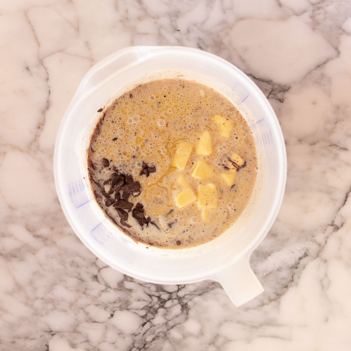- Place the chopped dark chocolate and butter in a large heatproof bowl. Set aside.